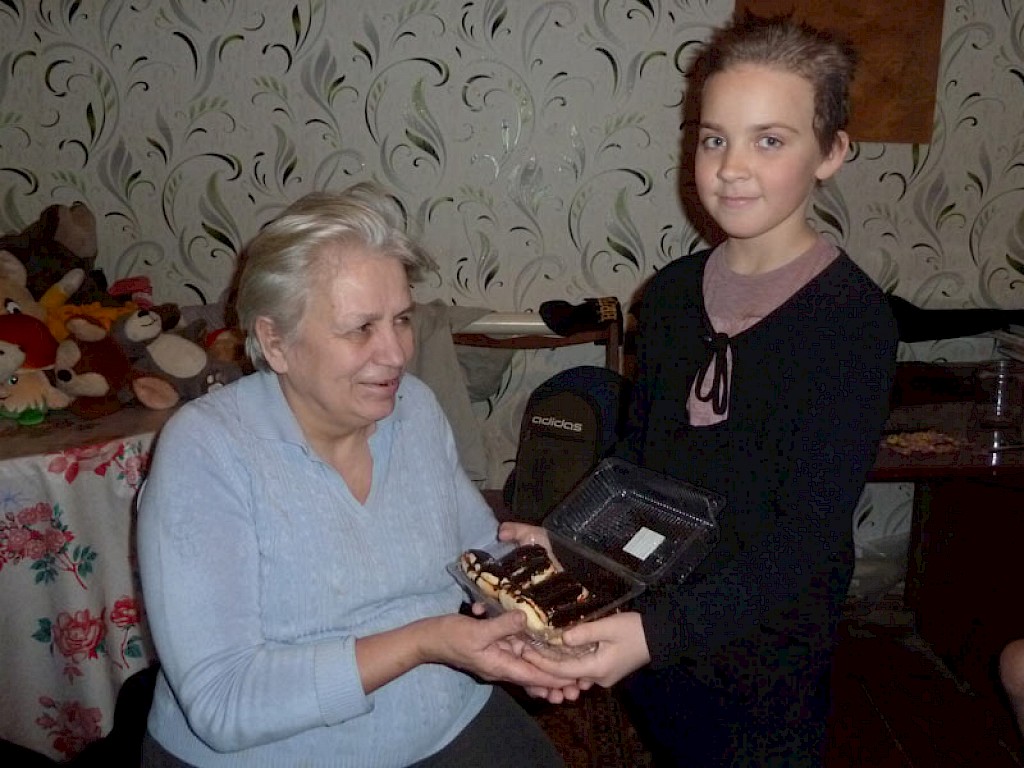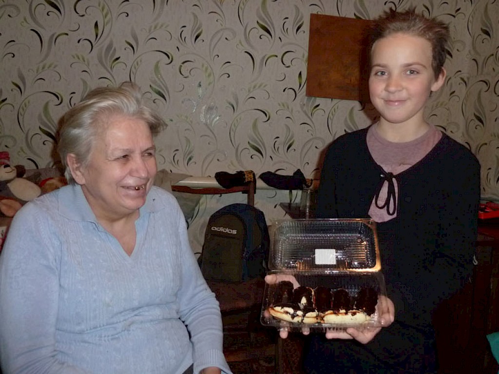 „Ich nehme meine Kekse für meine Oma mit. Nachdem mein Vater gestorben ist, der ja ihr Sohn ist, habe ich sie kaum noch lachen gesehen. Sie wird sich über meine Kekse freuen.“ Sorgfältig packt Lessja ihre Kekse in eine Serviette.