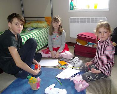 In unserem „Zufluchtsort“ in Pawliwka wohnen Flüchtlingskinder aus Charkiw und Donezk. Ihnen gefällt es dort gut. Mit unseren Kindern aus Pawliwka haben sie sich angefreundet. Alle gehen zusammen spazieren, spielen Volleyball, malen und singen. Doch spätestens am Abend vermissen sie ihr Zuhause. „Ich möchte wieder daheim sein. Mein Zimmer, mein Bett, all das fehlt mir.“ „Ich weiß gar nicht, ob alle meine Freunde noch am Leben sind.“ „Ob unser Haus noch steht?“
