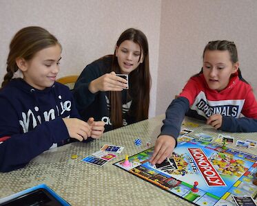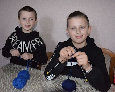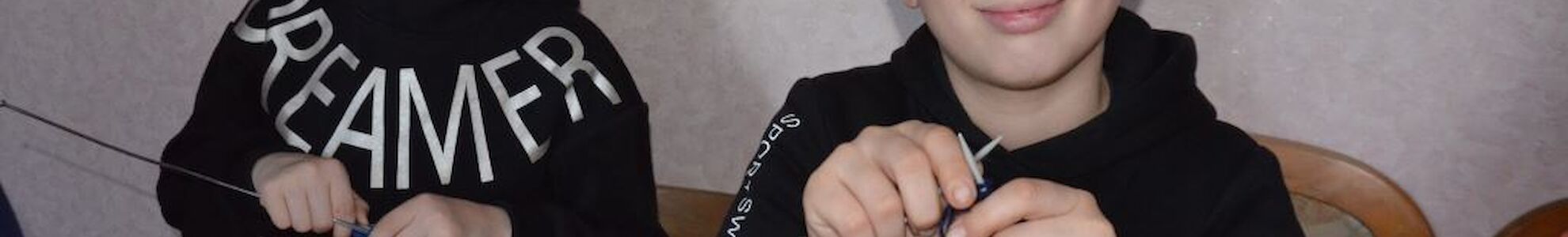 Die meisten Kinder leiden unter dem Krieg und seinen Folgen. In unserem Tageskinderheim am See versuchen wir, gemeinsam der traurigen Realität zu entfliehen. „Schau mal, ich habe ein paar Maschen gestrickt, ohne dass sie von der Nadel gefallen sind!“ Jura freut sich. „Ich werde bald eine Mütze stricken“, meint Lena. Neben dem Stricken beschäftigen wir uns auch mit Origami falten. „Wollen wir gemeinsam ein Spiel spielen?“