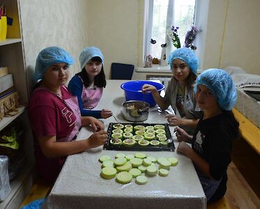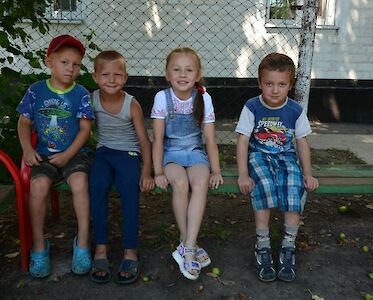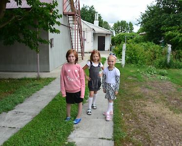 Das Programm in unserem „Zufluchtsort“ in Odariwka lenkt die Jungen und Mädchen ab. Wir hören biblische Geschichten und sprechen gemeinsam über den Krieg. Dascha legt ihre Lieblingspuppe vorsichtig in den Kinderwagen und fährt sie draußen spazieren. Mehrere Jungs klettern eine Leiter hoch. Die älteren Mädchen kochen zusammen, leckere Düfte erfüllen das Haus. Die Kleinen schauen herein, sie wollen das Abendessen nicht verpassen.