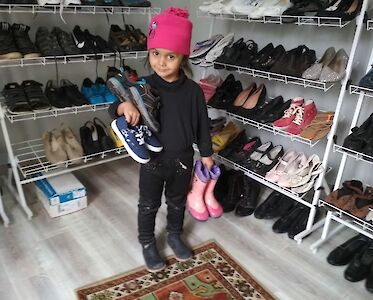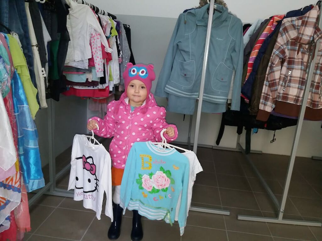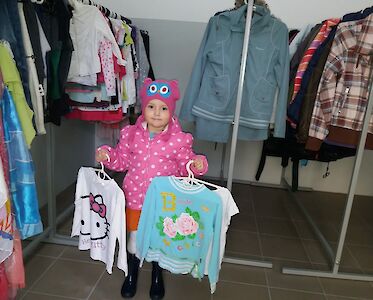 Die erste Gruppe, die unsere „Kleiderkammer“ besucht hat, waren die Kinder aus unserem „Spatzennest“ aus unserer „Villa Sonnenschein“. Wir danken allen, die uns in den vergangenen Wochen mit Unterwäsche für Kinder versorgt haben.
