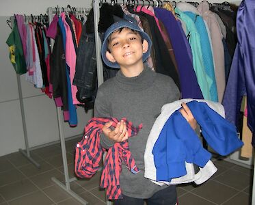 Oft kommen unsere Erzieherinnen mit einer ganzen Gruppe, um die Kinder neu einzukleiden. Dann stehen sie ganz stolz vor unserem großen Spiegel und wissen nicht, wie sie ihre Dankbarkeit ausdrücken sollen. Ihre Familien haben kein Geld, um Kleidung für sie zu kaufen.