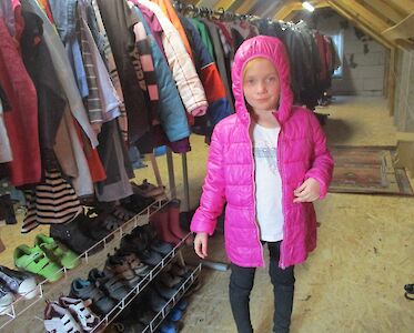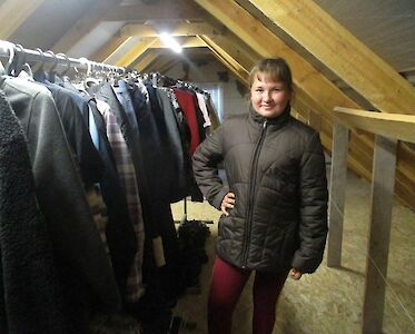 Heute ist ein ganz besonderer Tag für einige unserer Mädchen und Jungen. Wera Kolomoetz hat wieder eine neue Ladung von Kleidung und Schuhen aus unseren Hilfsgütern heraussortiert und hat sie in unser "Kleiderstübchen" gebracht. Nun können einige Kinder feste Schuhe und warme Kleidung anprobieren.