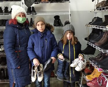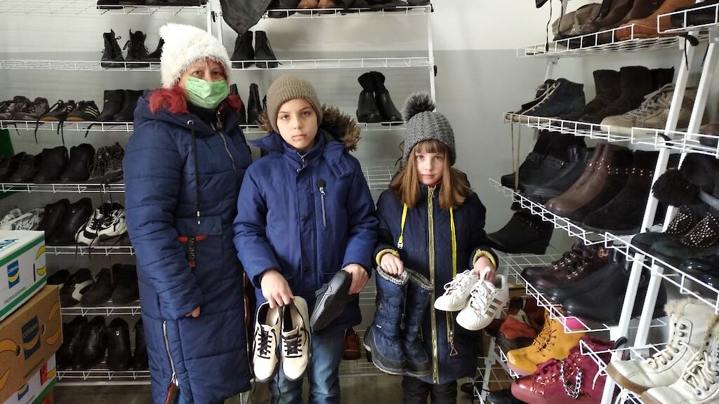 Wir sind dankbar, dass wir in den „guten Zeiten“ eine gute interne Infrastruktur geschaffen haben, wie z.B. unsere „Kleiderstübchen“. Hier können wir nun Kindern aus Flüchtlingsfamilien, die nur mit dem Nötigsten in Eile ihre Stadt oder ihr Dorf verlassen haben, mit Kleidung helfen – ein kleiner Hoffnungsschimmer in diesen Zeiten.