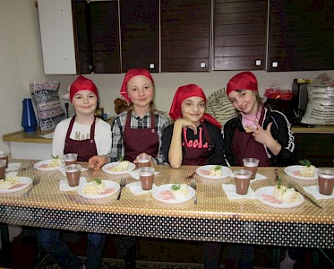 Doch wir denken nicht nur theoretisch über all diese Themen nach, alle diese Aufgaben werden natürlich in der Praxis ausprobiert. Wir kochen, backen und gehen gemeinsam einkaufen.