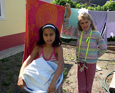 Natascha Romanenko und Alessia Nowikowa wohnen bei Lena Grabenko in unserer „Villa Regenbogen“. Von Zeit zu Zeit nehmen sie dort Mütter mit Kindern auf, die in eine Notsituation geraten sind.