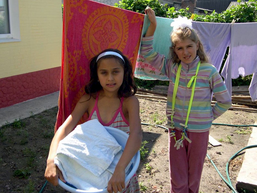Natascha Romanenko und Alessia Nowikowa wohnen bei Lena Grabenko in unserer „Villa Regenbogen“. Von Zeit zu Zeit nehmen sie dort Mütter mit Kindern auf, die in eine Notsituation geraten sind.