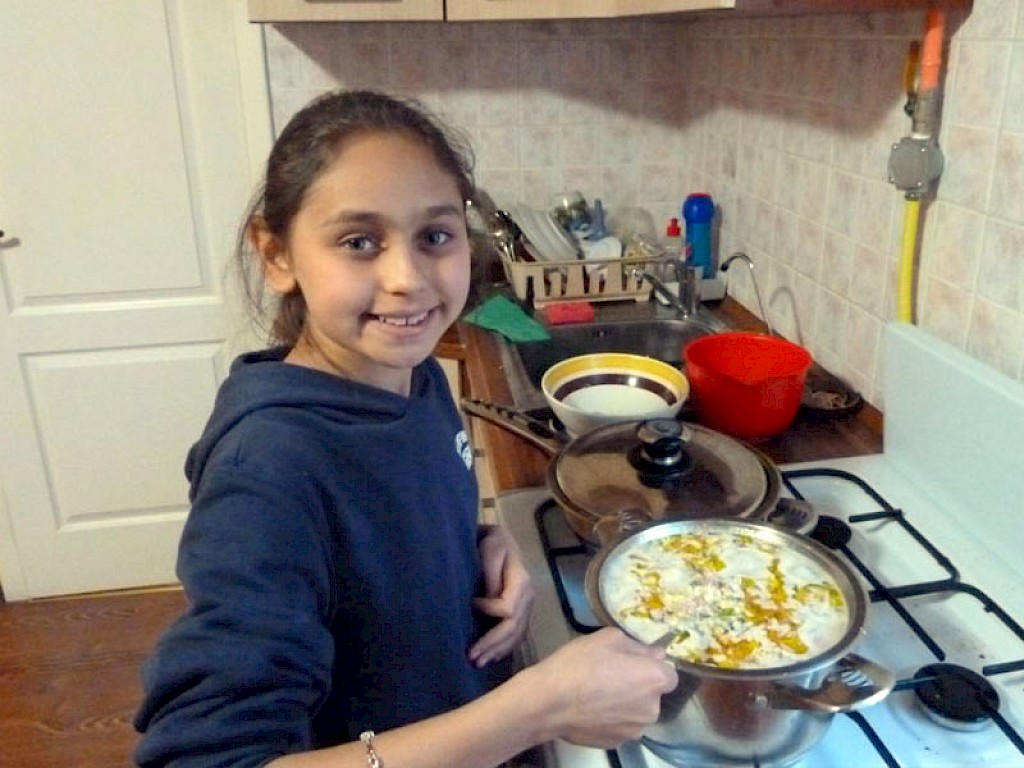 Und dann hat die Suppe so gut geschmeckt, dass wir Natascha und Alessia jeden Tag in der Küche finden. Nun kochen sie nicht nur Suppen, sie probieren immer neue Rezepte aus. Und vor einer Woche haben sie angefangen Kuchen zu backen.