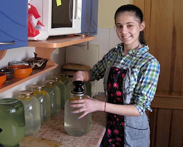 Zu Hause haben sie keinen Kühlschrank und auch keine Waschmaschine und auch keine Mutter, die ihr all diese Dinge beibringt.