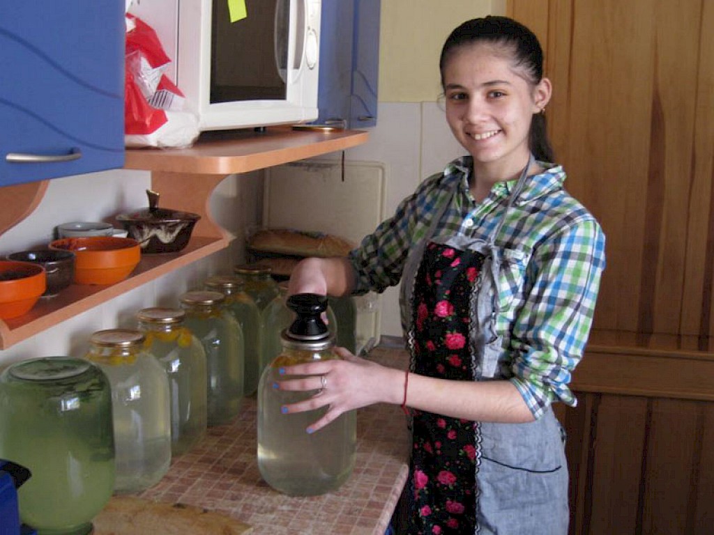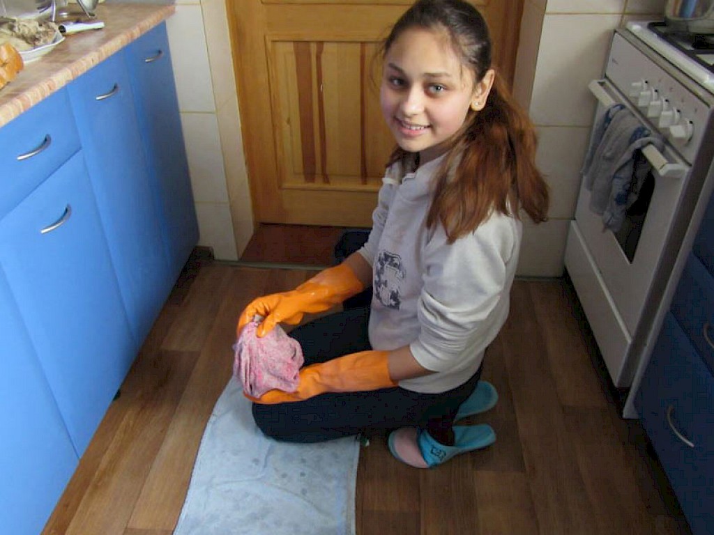 Zu Hause haben sie keinen Kühlschrank und auch keine Waschmaschine und auch keine Mutter, die ihr all diese Dinge beibringt.