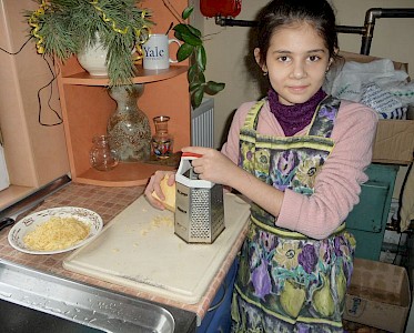 Es macht nicht nur unseren Mädchen Spaß in der Küche zu helfen, auch Anja ist froh, dass sie jetzt so viele Helferinnen hat.