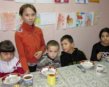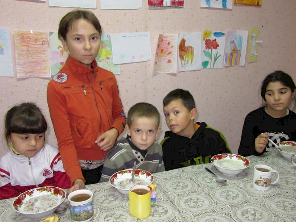 Und nach dem Mittagessen räumen sie ab, waschen das Geschirr. Wir sind froh, dass wir in allen unseren Kinderhäusern eifrige Helfer haben wie Tanja und Diana.