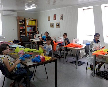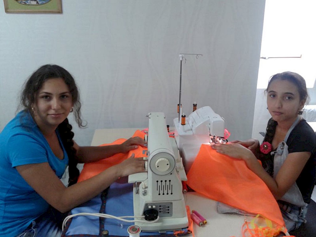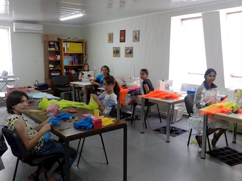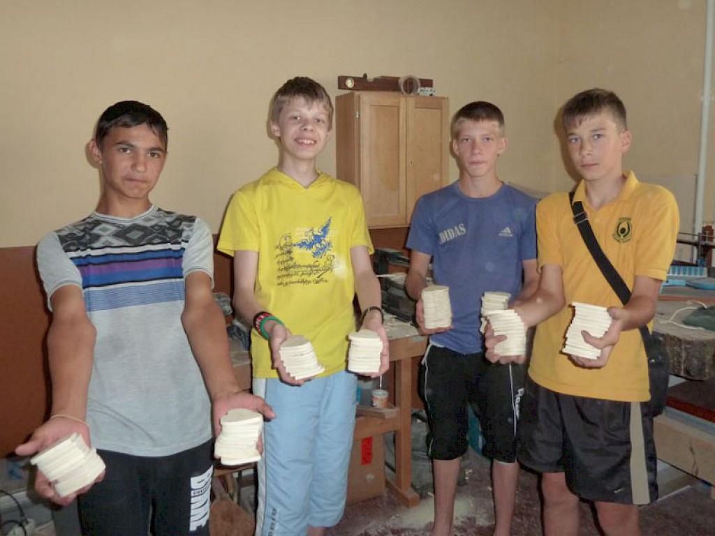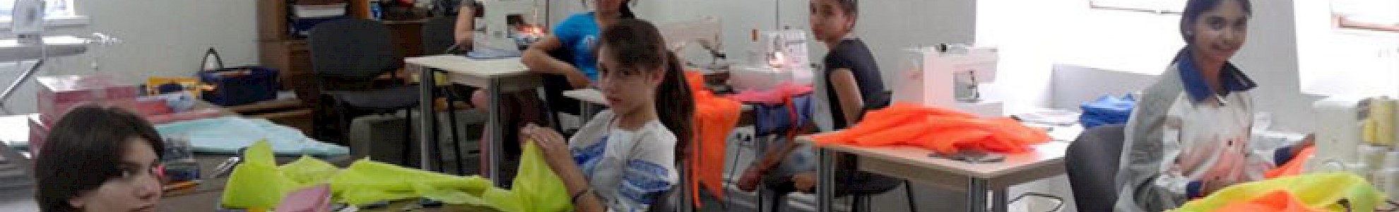Die Mädchen der „Lehrwerkstatt“ sitzen eifrig hinter ihren Nähmaschinen, schneidern Kostüme für Theaterstücke und bunte Schleifen für das Haar. Die Jungen kontrollieren die Zelte und reparieren, wo etwas kaputt gegangen ist.