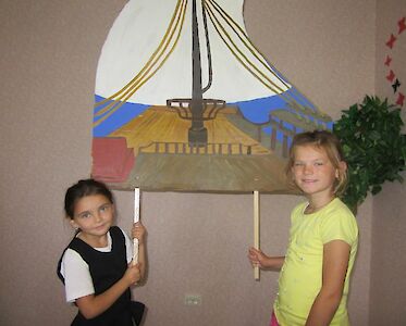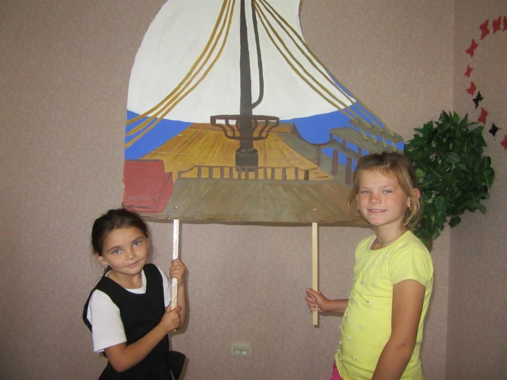 Und natürlich haben wir geübt, wie wir nach dem Stück auf die Bühne treten und Tante Aliona ganz stolz verkündet: „Das sind die Künstler von unserem Puppentheater!“