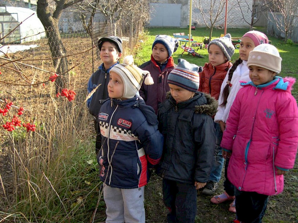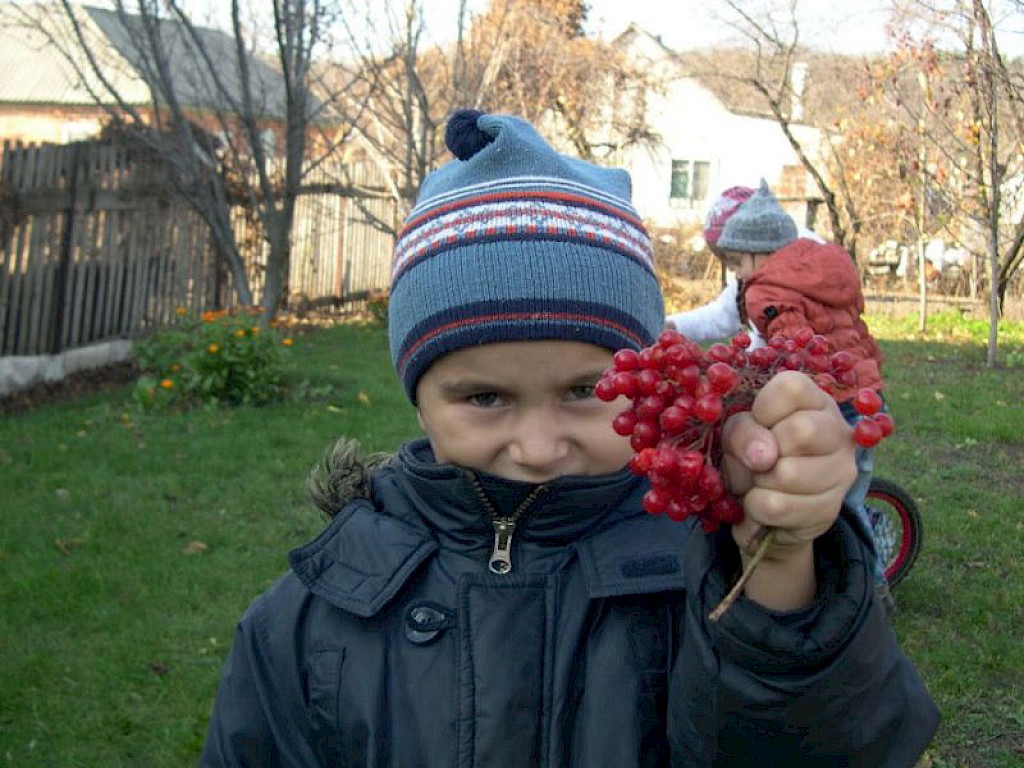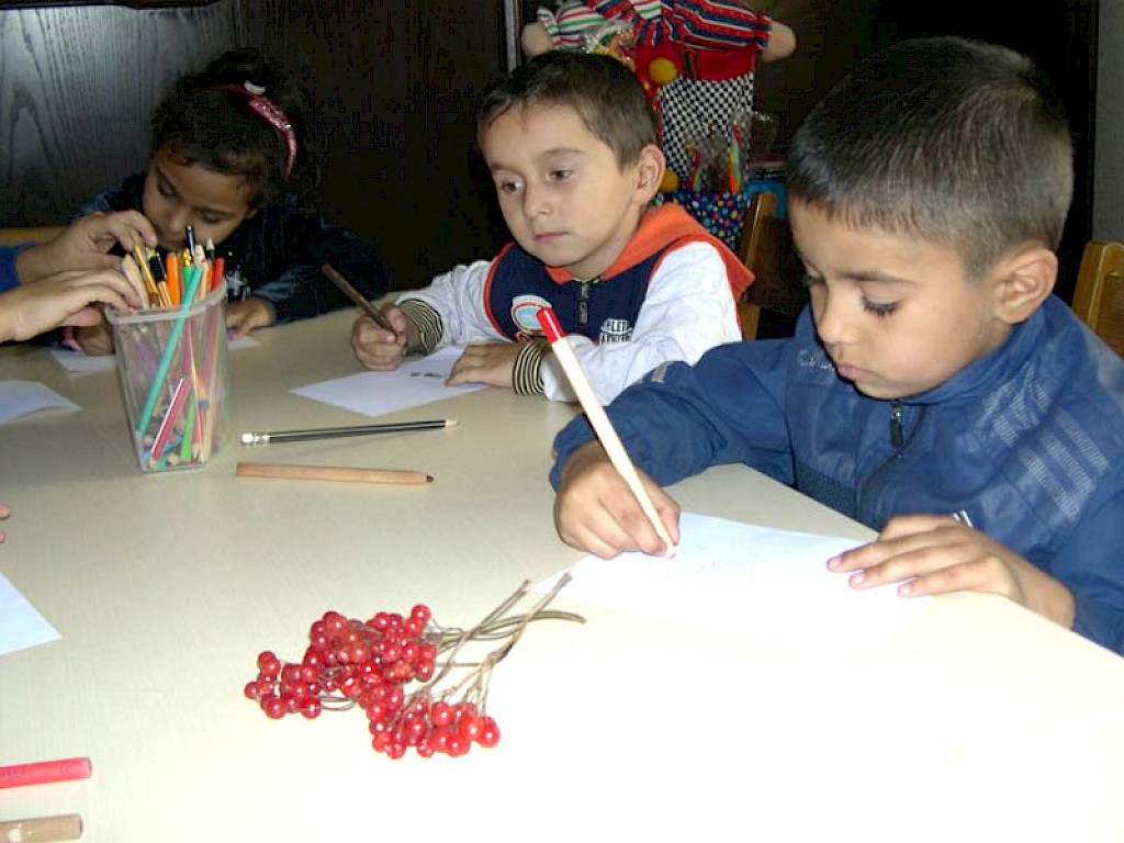 Im Herbst wandern wir mit den Jungen und Mädchen durch den Wald, sammeln Blätter zum Basteln und suchen Motive, die wir später malen können. Als wir heute einen kleinen Zweig mit roten Beeren fanden, begann Richard zum ersten Mal ein buntes Bild zu malen, was uns natürlich alle erfreut hat.