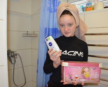 „Das Wasser in der Dusche ist richtig warm!“ „Ich habe meine Haare mit dem Shampoo aus Deutschland gewaschen. Jetzt duften sie und glänzen.“ Unsere Kinder freuen sich, wenn sie in unseren Kinderhäusern duschen können. Zuhause haben sie oft kein fließendes Wasser, keine Körperpflegemittel und können ihre Kleidung nicht in einer Waschmaschine waschen.