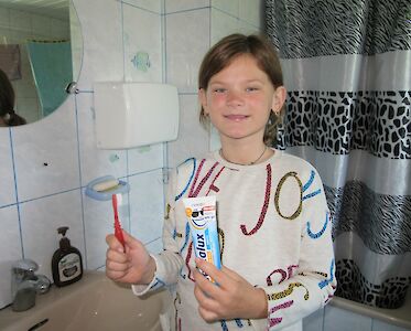Ein wichtiger Bereich in unserer Kinderarbeit ist Körperpflege. Die meisten unserer Gäste kommen aus armen Familien. Sie wohnen in ärmlichen Hütten. Sie haben kein Badezimmer, keine Dusche, oft nicht einmal fließendes Wasser. Ihre Eltern können ihnen es nicht beibringen, einige haben es selbst nicht gelernt.