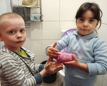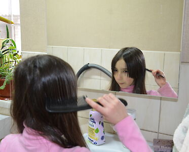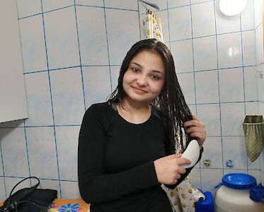 Wir bringen den Kindern bei, wie sie ihre Haare pflegen und sorgfältig kämmen. Die Kinder können duschen, die Nägel schneiden und bei Bedarf ihre Kleidung waschen. Der Körperhygiene widmen wir viel Zeit, denn durch den Krieg und dem ständigen Stress haben einige Probleme mit nächtlichem Einnässen.