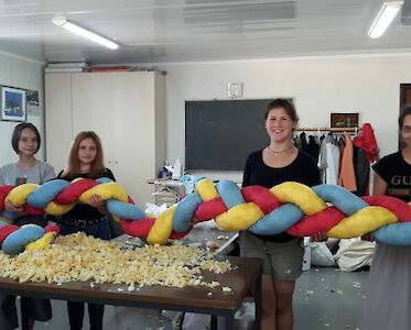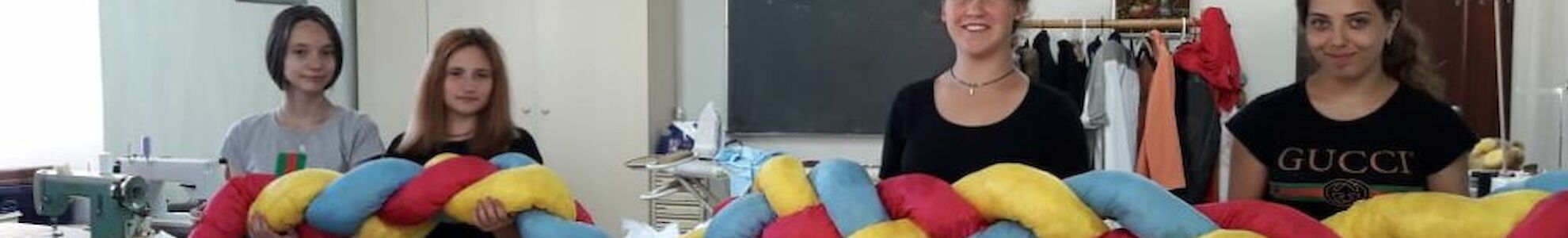 In unserer „Lehrwerkstatt für Mädchen“ laufen die Vorbereitungen auf unser „Sommerlager 2019“ auf Hochtouren. Da müssen Kostüme für die Anspiele geschneidert werden, bunte Dreiecke, die kennzeichnen, zu welchem Team man gehört.