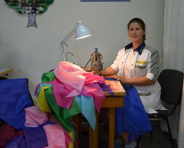 Da surren vom Morgen bis zum späten Nachmittag die Nähmaschinen. Die Mädchen haben Zeit, da sie nun Sommerferien haben. Im Sommerlager haben wir Kreativseminare, bei denen unsere Lehrlinge helfen. Diese Seminare sollen bei Mädchen aber auch den Wunsch wecken, in unsere Lehrwerkstatt zu kommen.