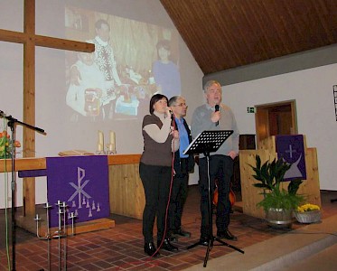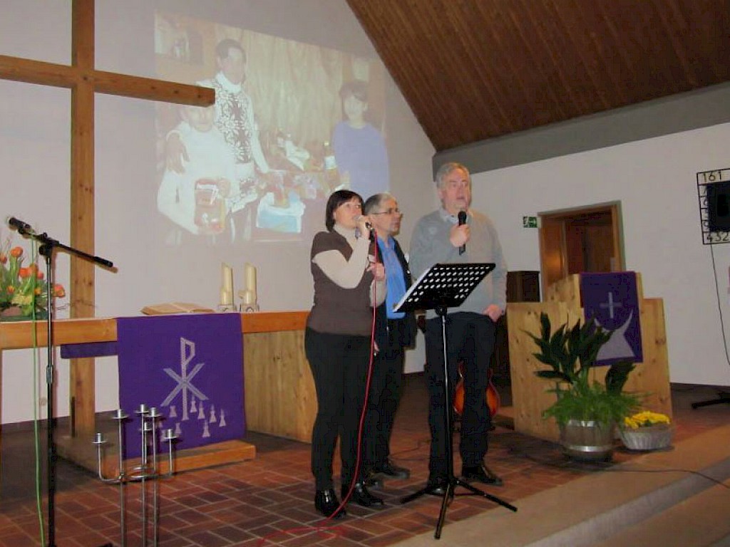 Der Kirchensaal war fast bis auf den letzten Platz besetzt. Es war der beste Besuch, seit wir nach Langenschiltach kommen. Viele Paten waren gekommen, um zu erfahren, wie es ihren Mitarbeiter oder ihren Patenkindern geht.