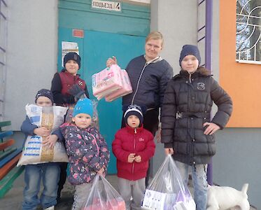 Regelmäßig packen unsere Mitarbeiter in der Ukraine Lebensmittelpakete für Binnenflüchtlinge, die aus den Kriegsgebieten geflohen sind. Viele dachten, sie würden wieder nach Hause zurückkehren. Aber die Zeit vergeht, der Krieg endet nicht. Wir helfen den Familien. Viele sind zu Freunden geworden, die ihre Freude und ihren Schmerz mit uns teilen.