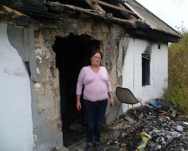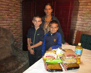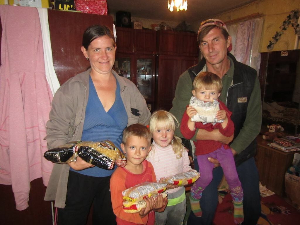 Neben den Hilfsgütern bringen wir aber auch Lebensmittel in bedürftige Familien. Viele dieser Familien haben bereits im September Gemüse und Kartoffeln aus unseren Aktionen erhalten. Luda Slobodianik leitet unsere Hilfsaktionen. Momentan ist sie besonders mit Brennholz für den Winter beschäftigt.