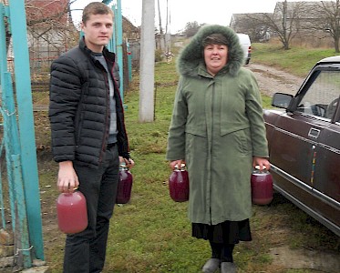 Da ist es wichtig, dass sie bei uns Obst und Gemüse erhalten, das wir im Herbst in allen Kinderhäusern eingelagert haben. In dieser Woche gab es einen weiteren Höhepunkt. Im „Zufluchtsort“ in Odarjewka servierten wir zum ersten Mal Traubensaft aus der diesjährigen Ernte.