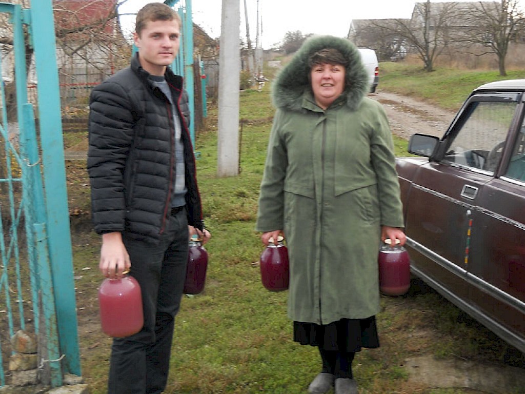 Da ist es wichtig, dass sie bei uns Obst und Gemüse erhalten, das wir im Herbst in allen Kinderhäusern eingelagert haben. In dieser Woche gab es einen weiteren Höhepunkt. Im „Zufluchtsort“ in Odarjewka servierten wir zum ersten Mal Traubensaft aus der diesjährigen Ernte.