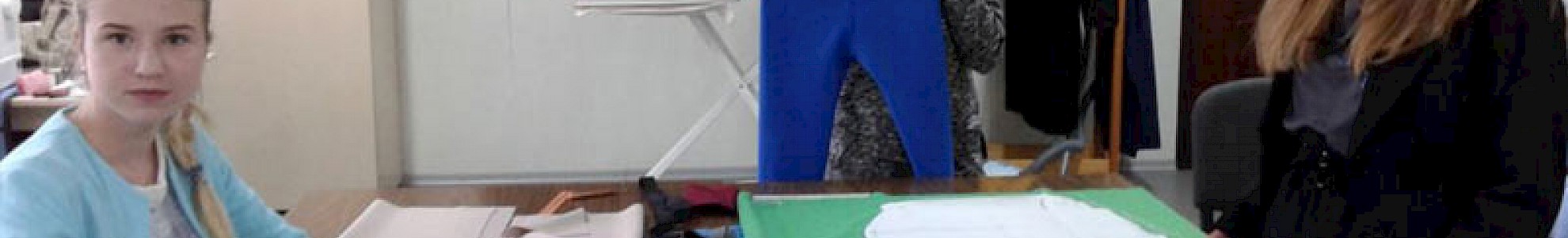 Alle sind gespannt, als Lena Grabenko, die unsere „Lehrwerkstatt für Mädchen“ leitet, die ersten Schritte erklärt. In der Zwischenzeit sind die ersten Leggins genäht. Nun wollen einige unserer Lehrlinge ihren Geschwistern zu Weihnachten Leggins nähen.