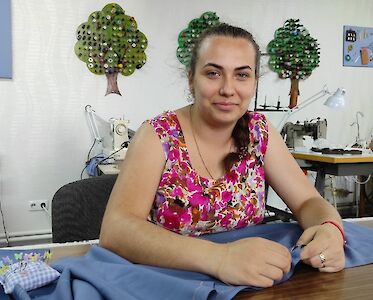 Ein wichtiger Teil unserer Arbeit ist unsere Lehrwerkstatt, in der wir Teenager auf die Arbeitswelt vorbereiten. Lena Grabenko fährt regelmäßig zu Seminaren, um sich selbst weiterzuentwickeln. Sie gibt all ihr Wissen an ihre Lehrlinge weiter.