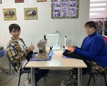 Ein wichtiger Bereich unserer Arbeit ist unsere Lehrwerkstatt, die von Lena Grabenko geleitet wird, in der Teenager auf ihre berufliche Zukunft vorbereitet werden. Einigen der Teilnehmerinnen haben wir in den vergangenen Jahren geholfen einen Ausbildungsplatz als Näherinnen in einer Nachbarstadt zu finden.