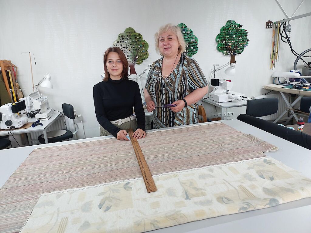 In unserer Lehrwerkstatt wird fleißig genäht. Es wird Stoff abgemessen und zugeschnitten. Die Nähmaschinen rattern.
