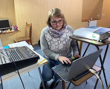 Die letzten Proben für unsere Soruschka-Tournee laufen auf Hochtouren. Lena, Lisa, Sweta und Aliona S. üben die Lieder. Aliona L. sitzt am Mischpult und hat die Technik in der Hand. Die Präsentation mit Bildern und Kurzfilmen ist fertiggestellt, die Texte sind geschrieben. Es sind Geschichten über den brutalen Krieg in der Ukraine, über Verluste, Schmerzen und Hoffnung.
