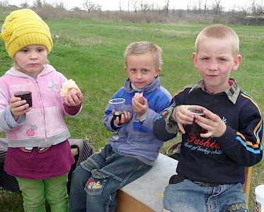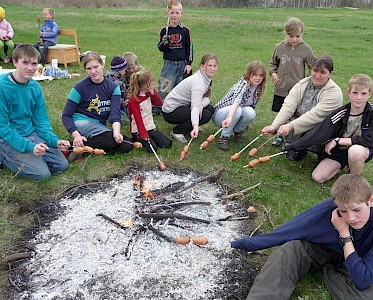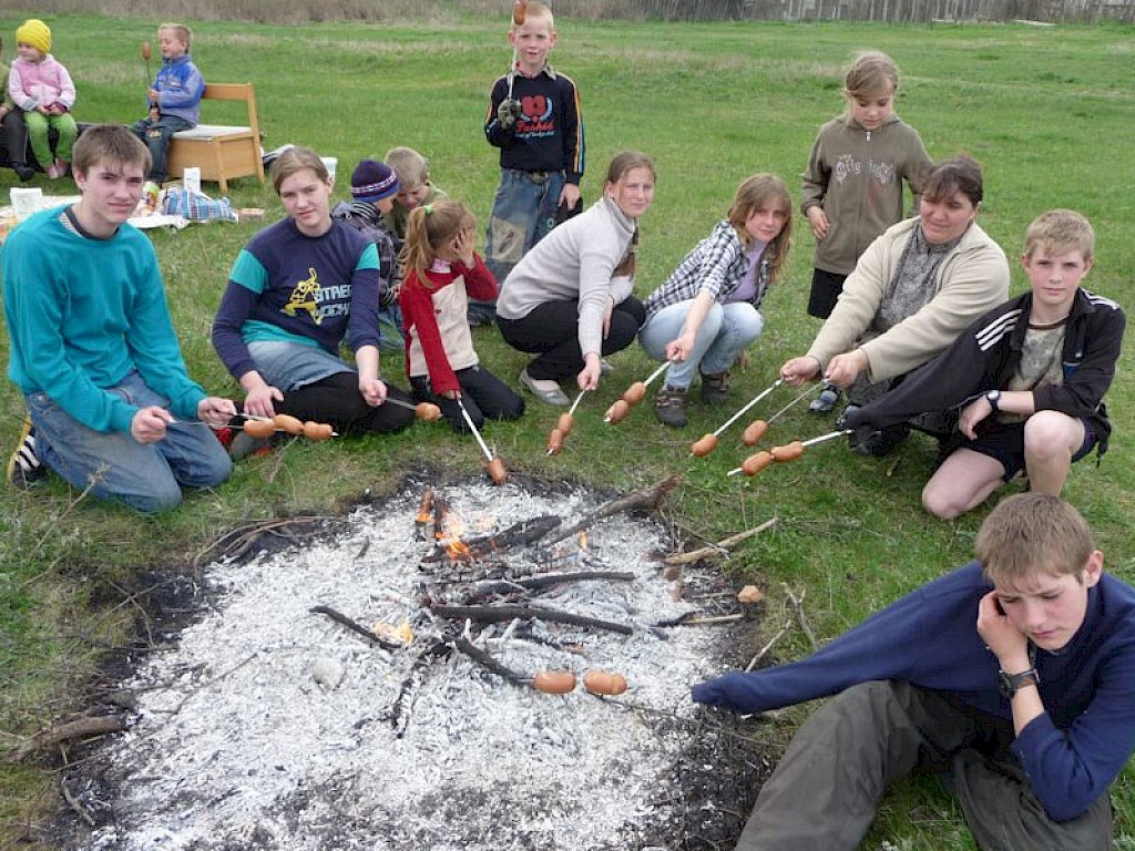 Heute haben wir die Jungen und Mädchen aus unserer „Villa Sonnenschein“ noch einmal zu einem letzten Picknick eingeladen. Beladen mit schweren Rücksäcken machen wir uns auf den Weg zu einer romantischen Wiese am Stadtrand. Schon bald brutzeln Würste über dem lustigen Feuer.