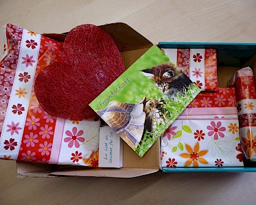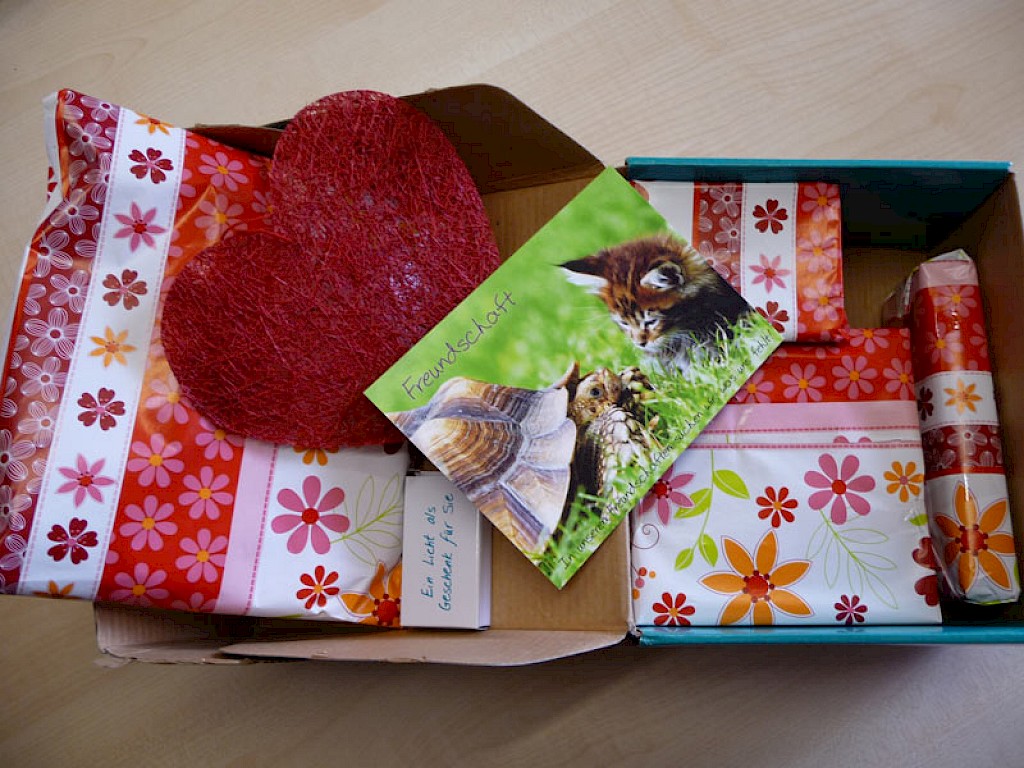 „An Nicola Gocke“ steht auf einem kleinen Päckchen. Nanu? Das ist doch wahrscheinlich ein Versehen. Vorsichtig öffnet sie das Paket und findet eine liebevolle Karte und liebevoll eingepackte Geschenke. Vorsichtshalber ruft Frau Gocke bei der Missionsfreundin an: „… ist das für Ihr Patenkind, oder tatsächlich für mich?...“ „Das ist für Sie! Sie machen sich doch so viel Arbeit und ich wollte Ihnen auch einmal eine Freude machen.“ Frau Gocke ist gerührt. „Ich danke Ihnen von Herzen! Was für eine liebe Überraschung
