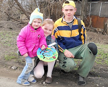 Heute sieht es schon ganz anders aus. Lilia kommt jeden Nachmittag begeistert in unseren „Zufluchtsort“ gestürzt und Oleg hilft Jaroslaw Galagowetz eifrig bei praktischen Arbeiten. Und seit einigen Tagen bringen sie nun sogar ihre zwei Jahre alt Schwester Sofia mit.