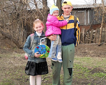 Lilia saß total durchgefroren an unserer Heizung, um sich ein wenig aufzuwärmen und hat sich heißhungrig auf ihr Essen gestürzt. Ira und Oleg waren zwei verschlossene Kinder, zu denen wir kaum Kontakt finden konnten.