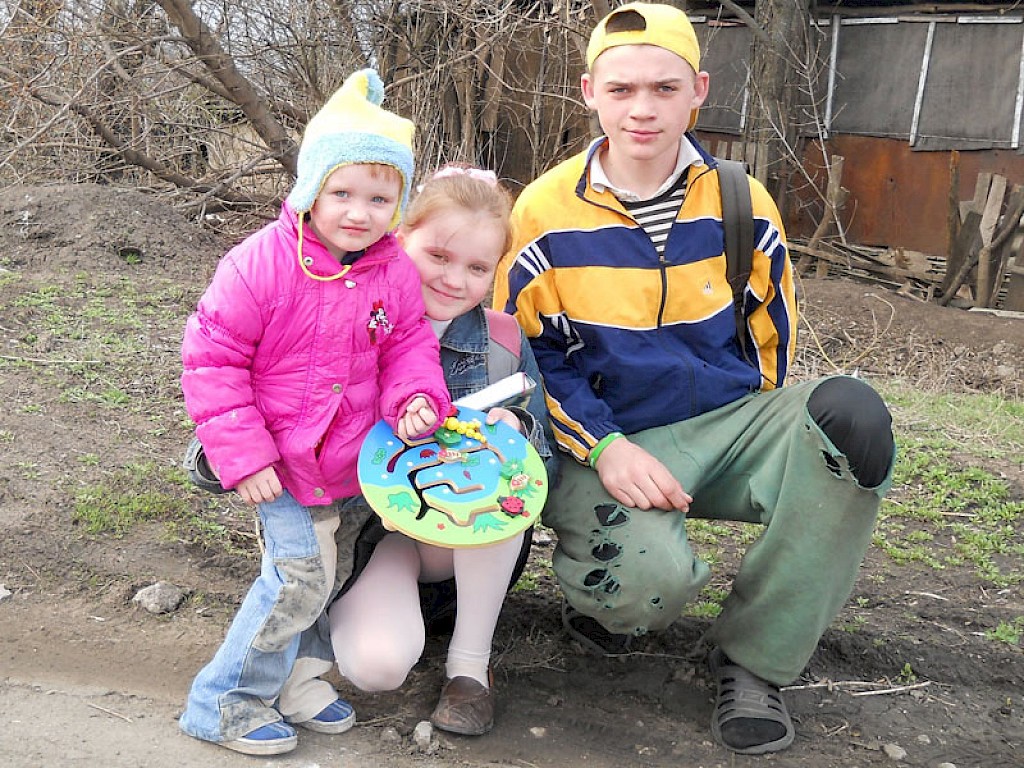 Lilia saß total durchgefroren an unserer Heizung, um sich ein wenig aufzuwärmen und hat sich heißhungrig auf ihr Essen gestürzt. Ira und Oleg waren zwei verschlossene Kinder, zu denen wir kaum Kontakt finden konnten.