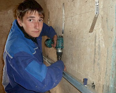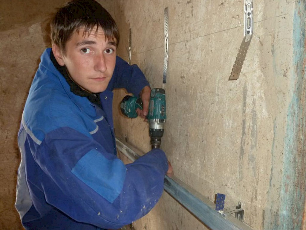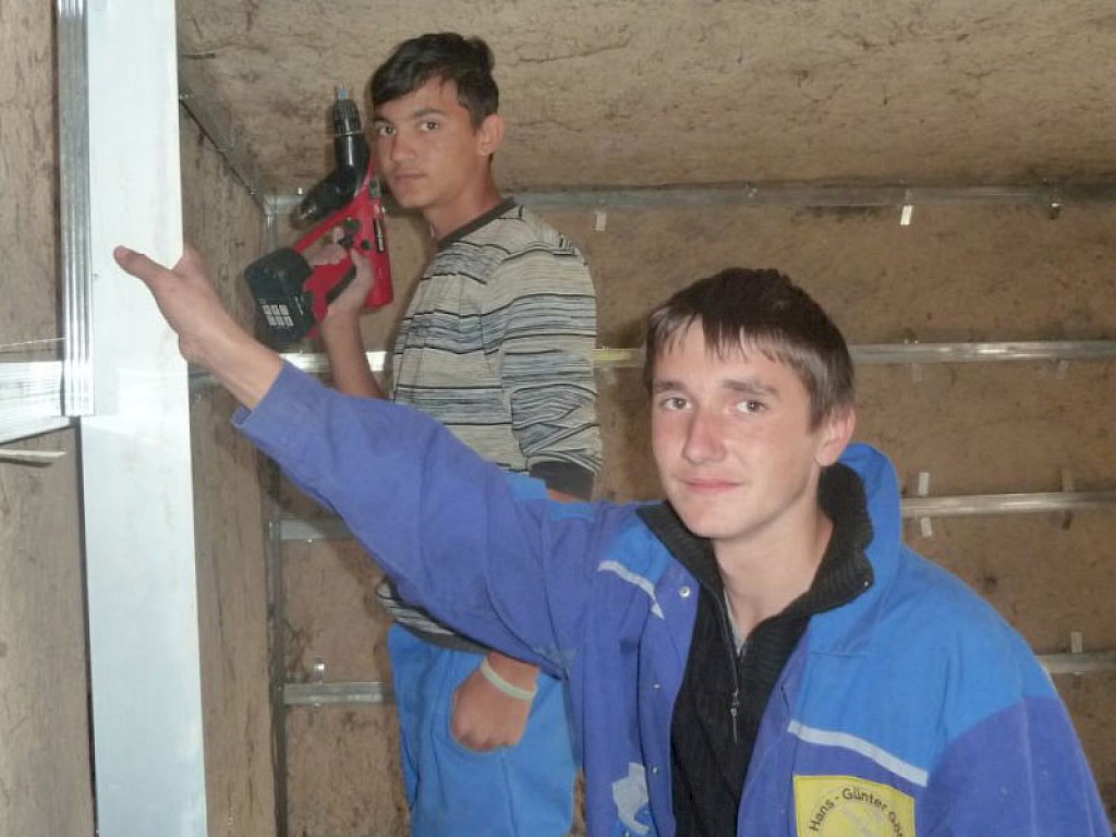 „Unsere „Lehrwerkstatt“ ist ja schon spannend, aber Arbeit an unserem neuen „Zufluchtsort“ hier in Pawlowka macht noch mehr Spaß. Da können wir alles, was wir bereits gelernt haben, umsetzen!“