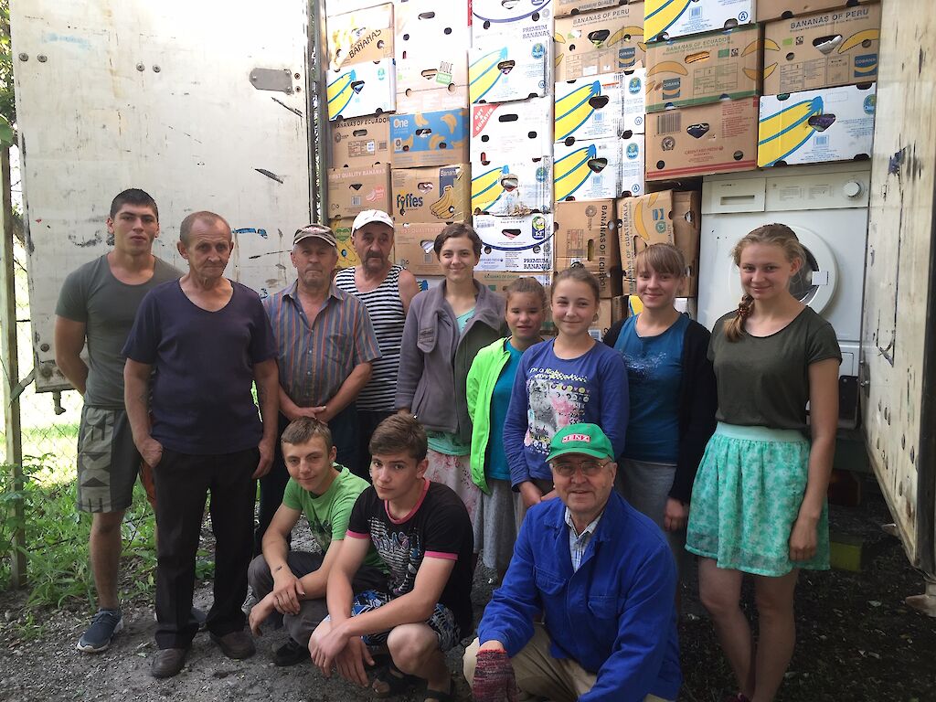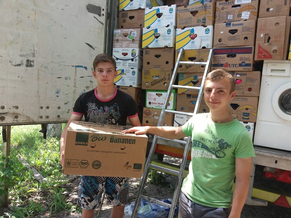Am 20. Mai machen sich Dima Grabenko und Peter Degtjar wieder einmal auf die lange Reise, um Hilfsgüter in Deutschland abzuholen. Diesmal wurde unser großer Lastwagen in unserem Missionsbüro in Hüttenberg beladen. Auf einen LKW passen fast 100 Kubikmeter Hilfsgüter. Das sind fast 1.800 Bananenkarton.