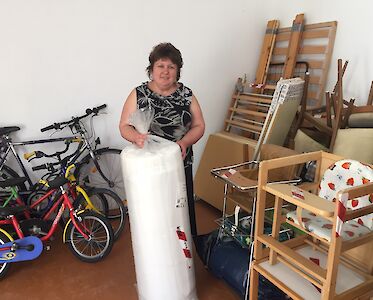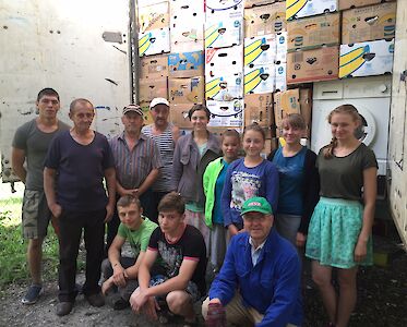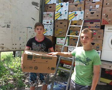 An einem Wochenende, an dem sich die beiden Fahrer ausruhen konnten, machten sie sich wieder am 27. Mai auf die Heimreise. Am 30. Mai trafen sie in Odarjewka ein, wo die Hilfsgüter unter Aufsicht eines Zollbeamten in unsere Lagerhalle abgeladen wurden, die hinterher versiegelt wurde.