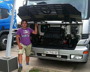 Doch vorher gab es große Reparaturarbeiten an unserem LKW. Das Fahrzeug ist nicht mehr so jung. Deshalb wurden in einer Werkstatt in Dnepropetrowsk alle Fehler behoben. Im Anschluss brachte es Dima Grabenko über den TÜV und machte alle notwendigen Papiere.