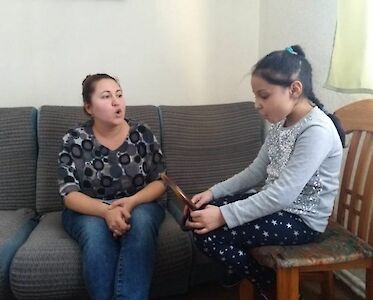 Nachdem sich die Quarantäne ein wenig geöffnet hat, fängt Anja Romaniuk wieder an, ihre Mädchen und Jungen in ihren Unterricht einzuladen.