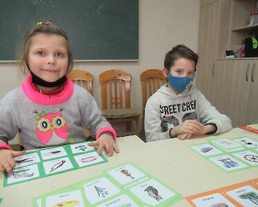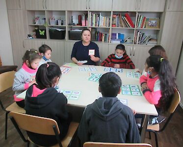 Anja hat Karten mitgebracht. Spielereich versuchen sie das Wort zu benennen, das sie auf dem Bild sehen. Es ist besonders schön zu erleben, wie sich unsere Gäste gegenseitig helfen, wie sie sich ermutigen.