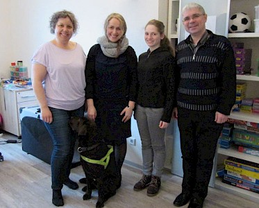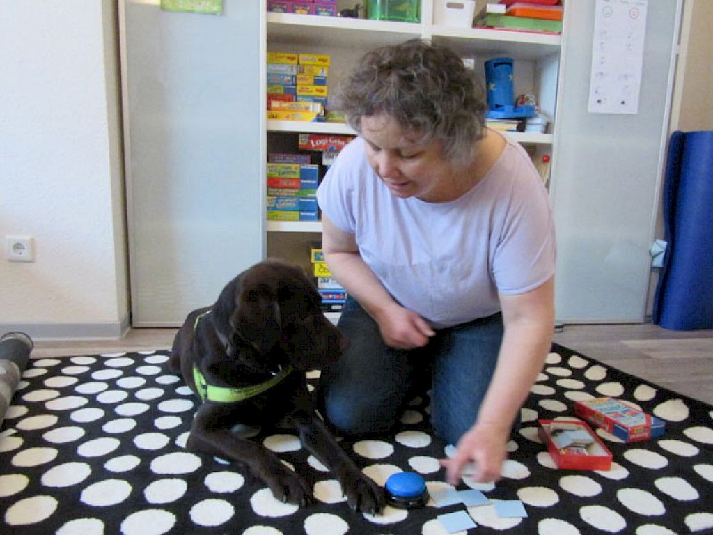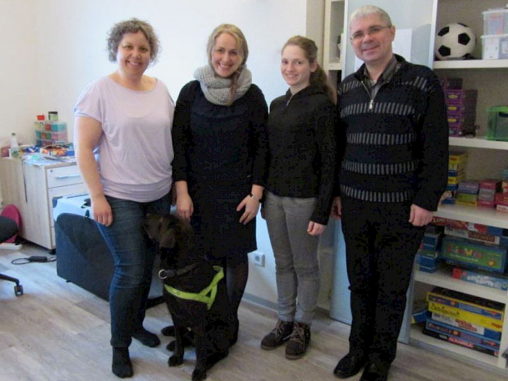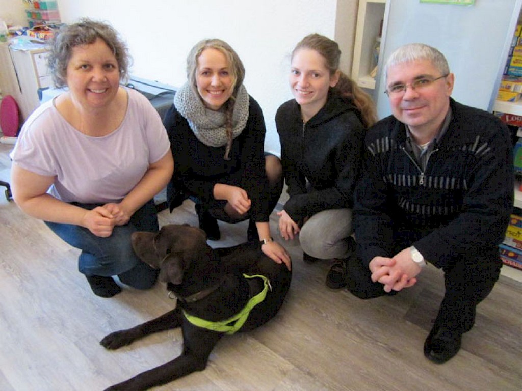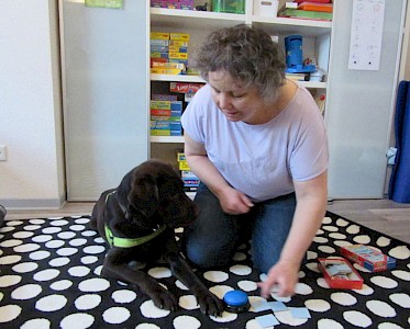 In diesen Tagen besuchten wir Maike wieder einmal und erfuhren diesmal, wie sie mit einem Hund arbeitet. Außerdem gab sie uns Übungen, die helfen Lippen und Zunge zu stärken.