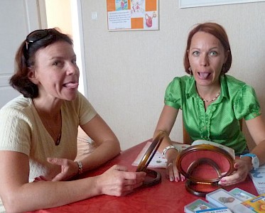 Ein großes Problem ist, dass diese Kinder bestimmte Laute nicht richtig aussprechen können. Olga Schumilo, die unsere medizinische Abteilung leitet, hat den ganzen Sommer genutzt, um von einer Freundin, die Logopädin ist, Werkzeuge aus der Logopädie zu lernen. Im kommenden Schuljahr wird sie ihr neues Wissen in unserem „Spatzennest“ anwenden.