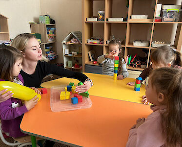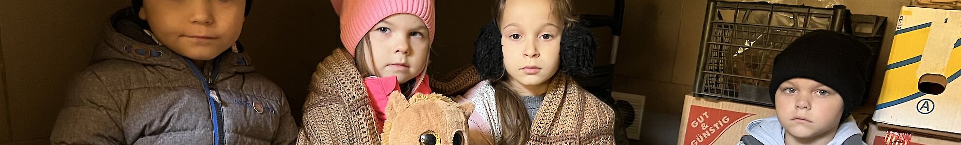 In unserem Spatzennest geht es meist laut und lustig zu! Doch immer wieder wird das Spiel der Kinder durch das Heulen der Luftschutzsirenen unterbrochen. Alle Kinder und Erzieherinnen müssen dann einen Schutzraum aufsuchen. In der kalten Jahreszeit ist das gar nicht so einfach! Die Kinder müssen sich warme Jacken anziehen, wir müssen ihnen helfen, die Schuhe zuzubinden. Gemeinsam haben wir geübt, wie man sich in Notsituationen verhält und dass man sich gegenseitig hilft.