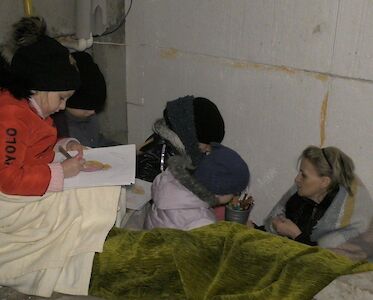 Wenn die Luftschutzsirenen aufheulen, wissen alle Kinder und Erwachsenen in der Ukraine was zu tun ist. Die jüngeren Kinder suchen oft nur widerwillig den Luftschutzbunker oder Kellerraum auf. Sie möchten spielen, Spaß haben und verstehen nicht, warum es stattdessen wichtig ist, Schutz zu suchen.
