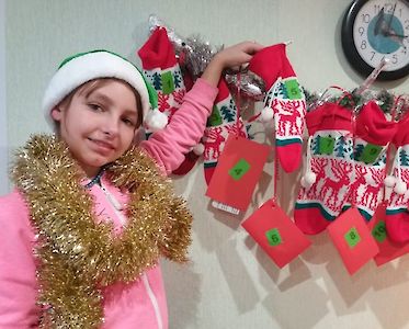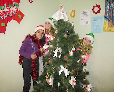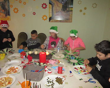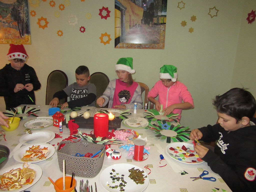 Leise Musik erfüllt das Zimmer. Da werden Schneeflocken aus Papier ausgeschnitten und weiße Engel. Einige basteln an Girlanden. Während die Mädchen und Jungen beschäftigt sind, lesen wir ihnen eine winterliche Geschichte vor.